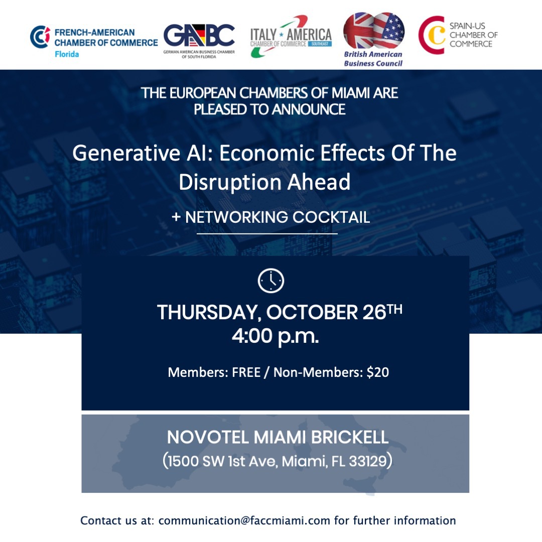 Join the European Chambers for an insightful evening, as we explore the economic impacts of upcoming disruptions caused by Generative AI.