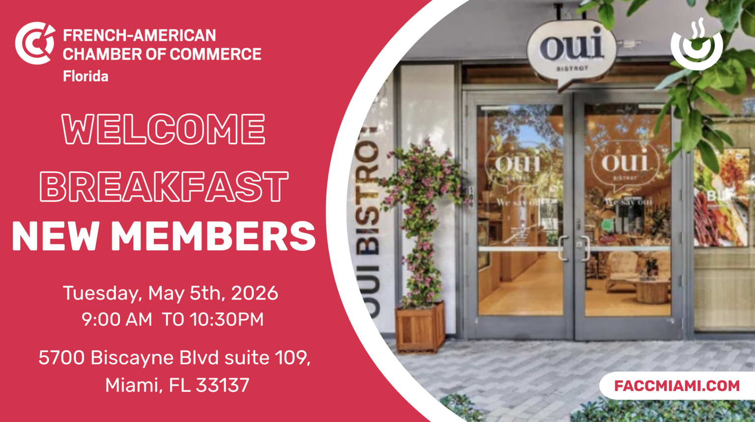 Come join us for breakfast and coffee and meet other members of the French American Chamber. Orientation to the chamber for New Members 9:00-10:30 am.