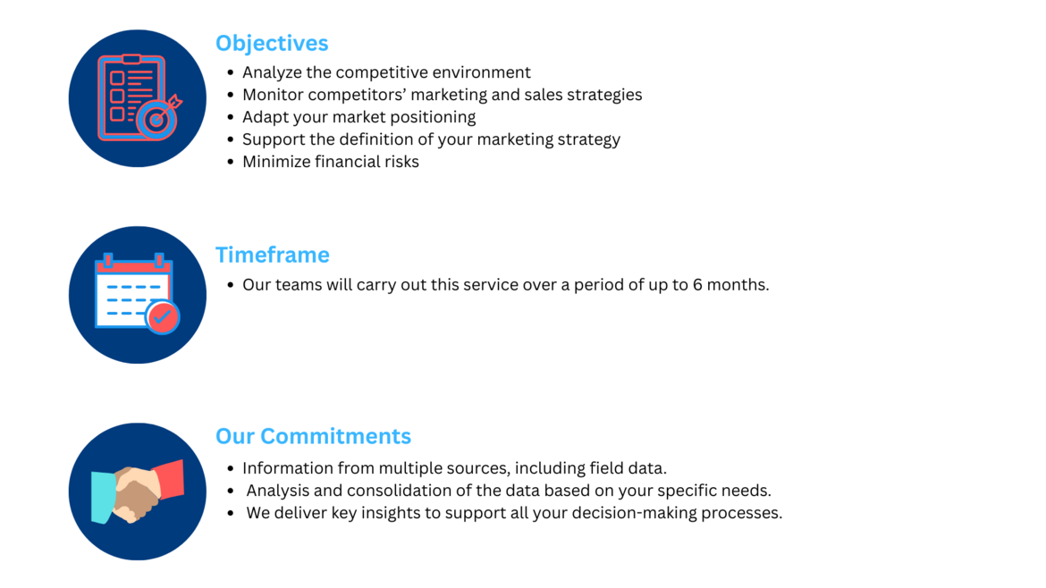 Market monitoring provides insights into the evolution of a market or sector over an extended period. It is intended for companies already operating in the market that wish to better understand their competitive environment and potential threats, in order to anticipate and adjust their commercial strategy.