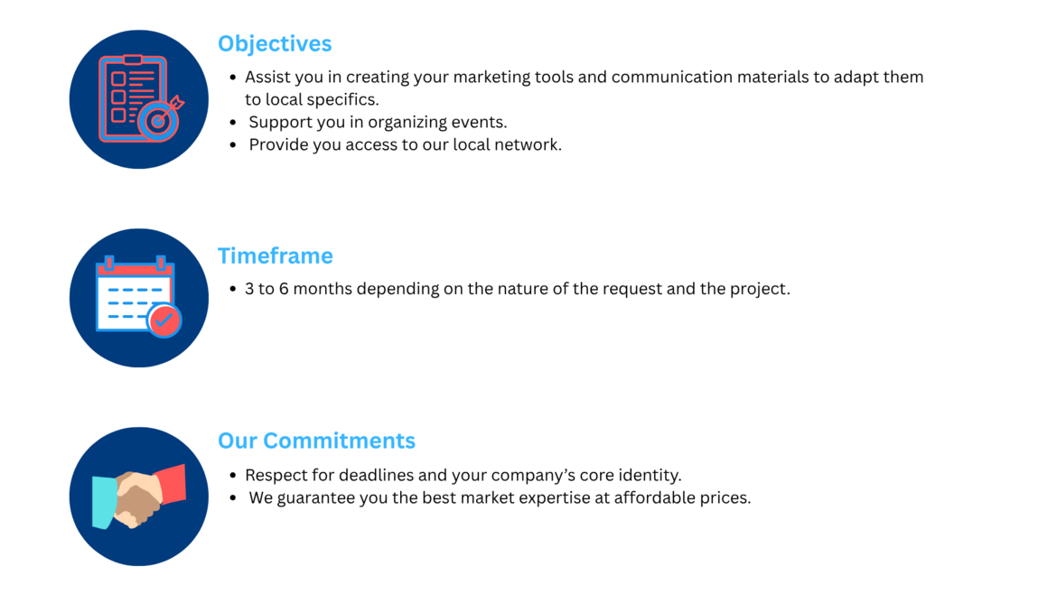 Thanks to their knowledge of local markets, our teams provide you with their expertise to better communicate and promote your products and company!